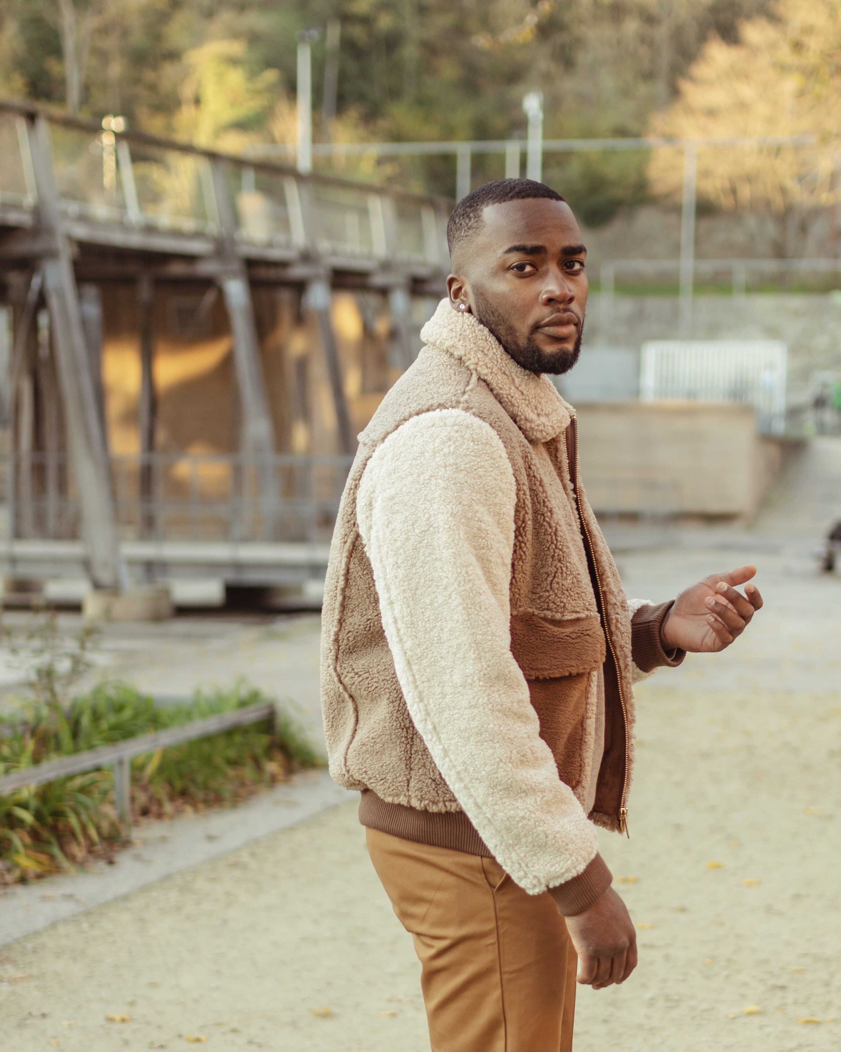 “Let’s say goodbye to 2020 avec ce bomber en peluche de la marque néerlandaise Scotch & Soda, un coup de coeur qui tient chaud pour cette fin d’année ” – Lieu : Esplanade Saint-Leonard, Liège.