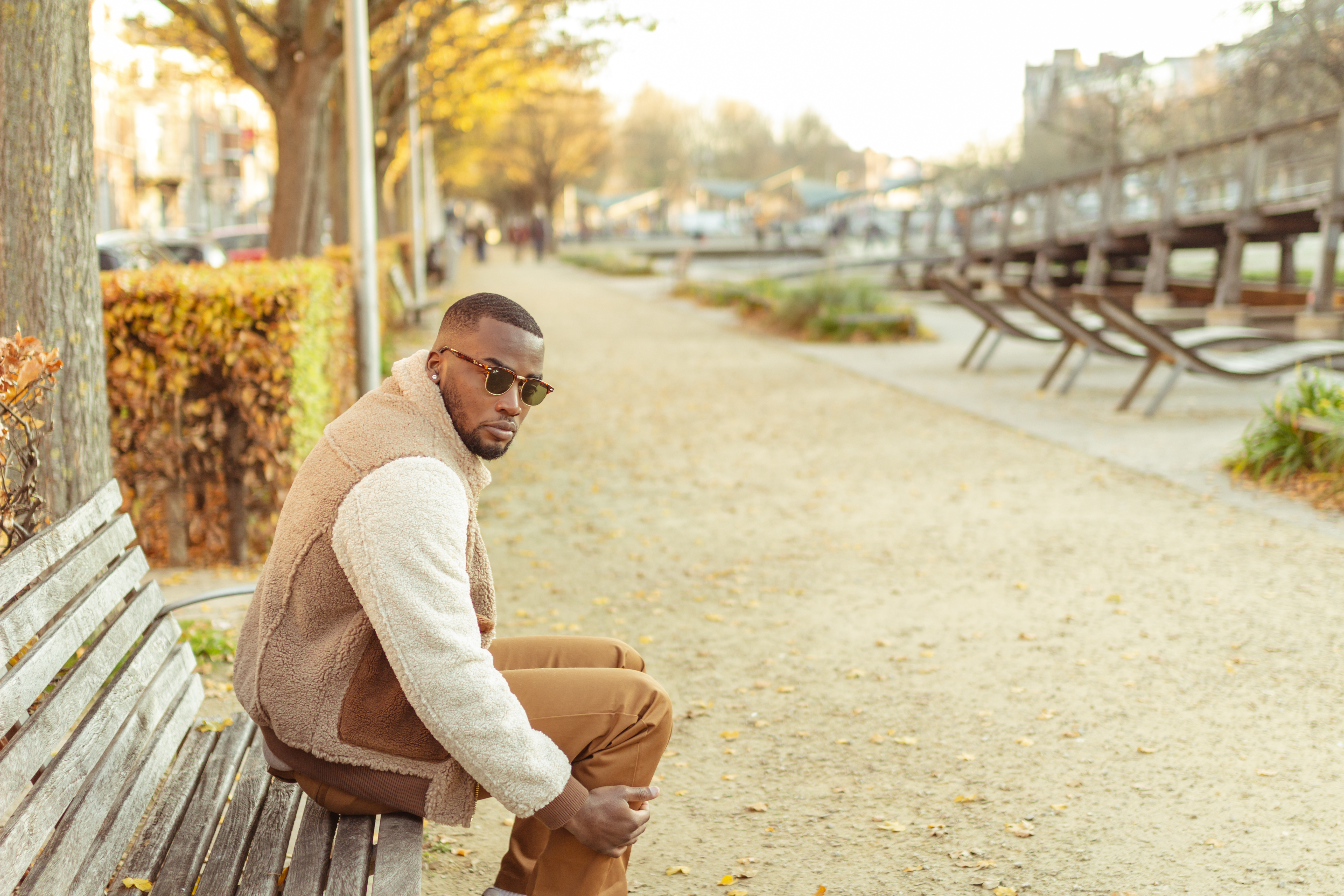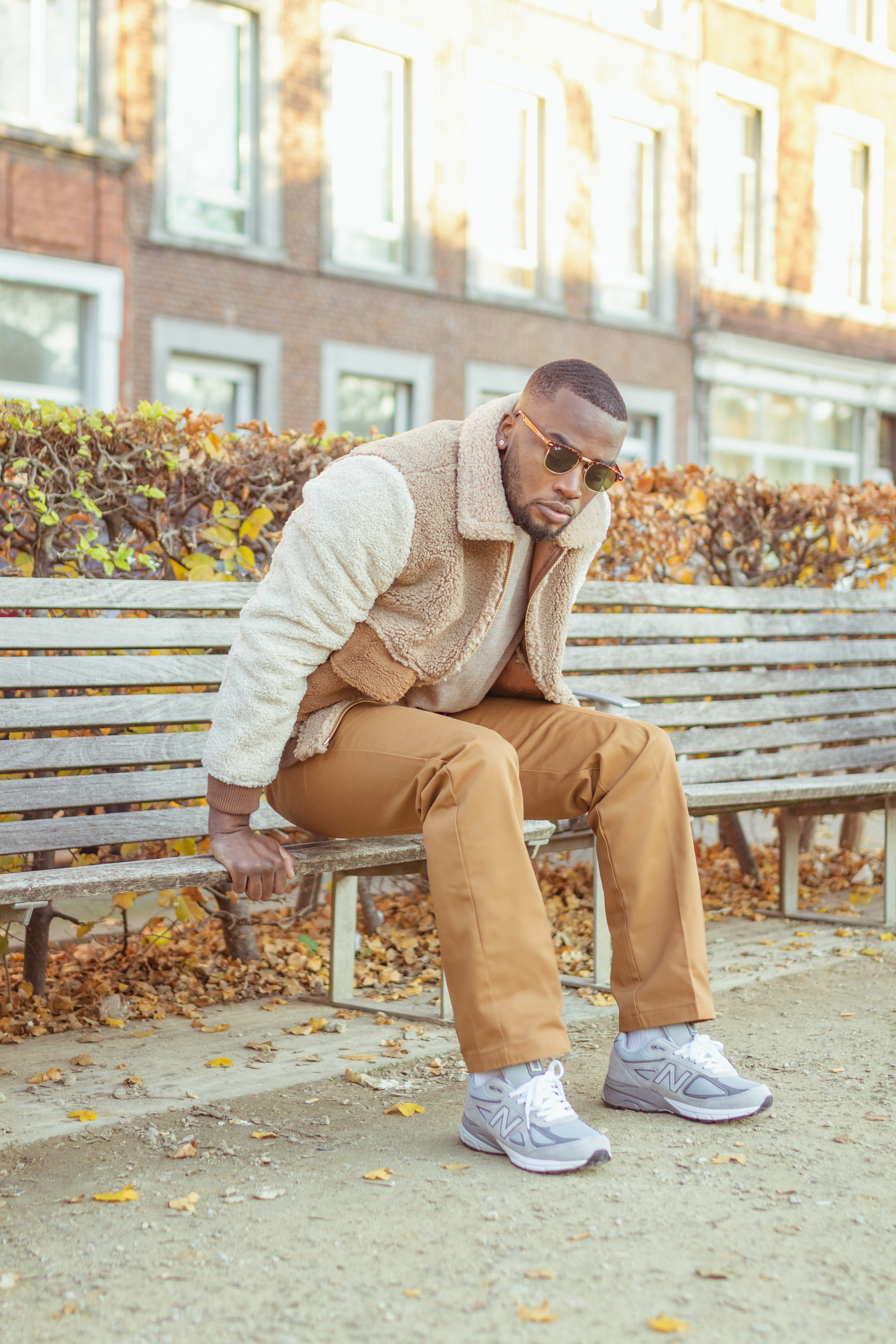 Veste : @scotch & Soda // Pull : @HM // Lunettes : @Rayban //Chaussures : @New Balance // Pantalon : @Dickies